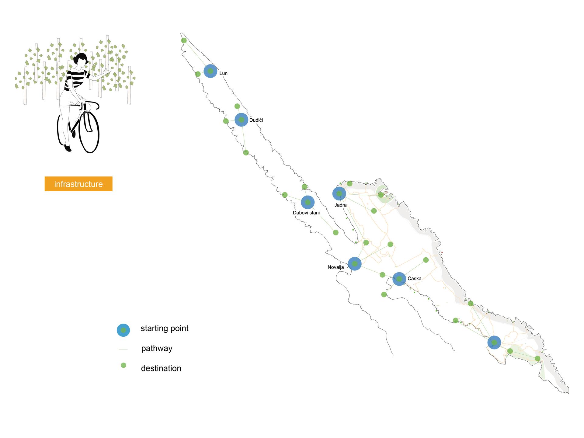 Novalja urban development study deals with the whole western part of the Pag island, the area of City of Novalja. Because of its different spatial characteristics, this big area has been divided in six thematic spatial zones: Lun peninsula, Old Novalja bay, Novalja Field, City of Novalja, Pag bay and the so-called Lunar landscape. Each zone is specific with its geographical characteristics, traditional use of space, resources and potentials. That is what defined the specific approach in planning of further development of each zone. Natural features and the landscape, existence of the traditional agriculture, pastures and millennial olive groves all have great potential and they are starting points for the planning of sustainable development.