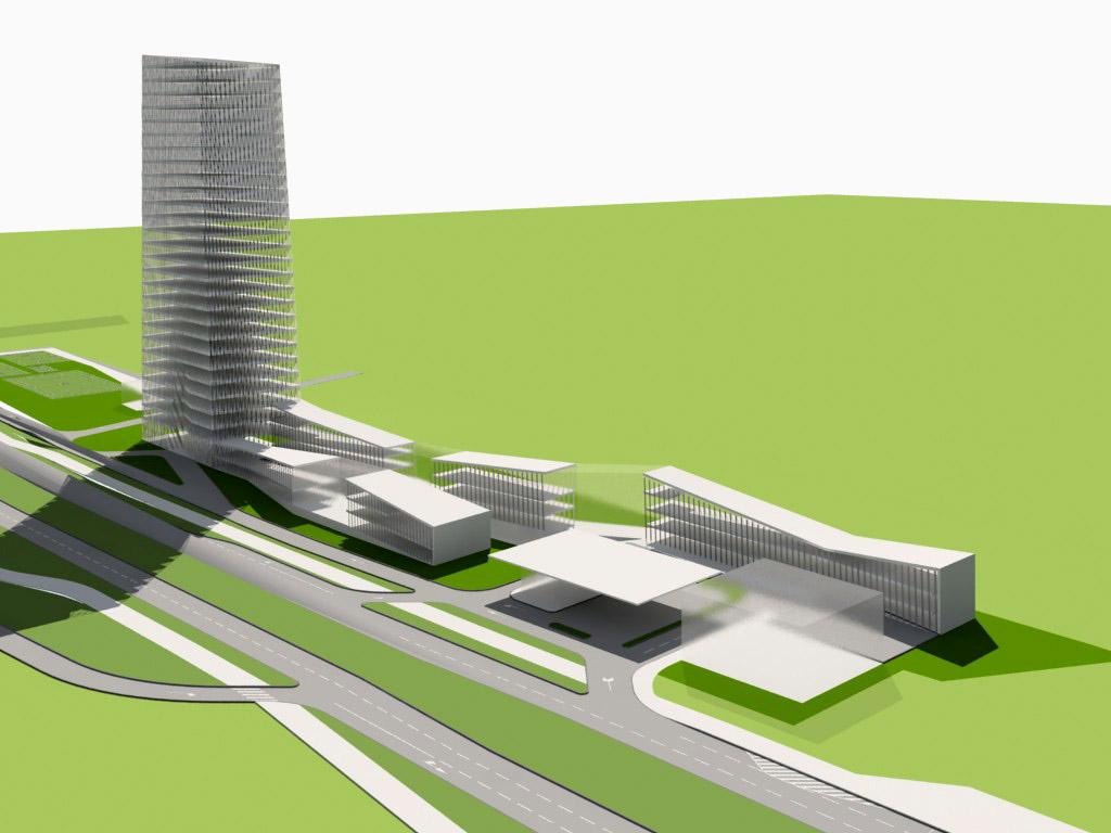 The SE gate project is a proposal for construction a 26-storey office tower. The location of Radnička Road / Domovinski Bridge lies in the southeast of the city of Zagreb, with low-rise buildings on the left bank of the Sava, right next to the construction site of the new Domovinski Bridge. When Domovinski Bridge and Radnička Road are finished, Zagreb will have another access route to the city, the first in 25 years. The new road, as a continuation of Heinzelova Road, will connect Slavonska Avenue, Zagreb ring road and the shortest way to the airport. The rest of the lot should include smaller structures for commercial, catering and business purposes, while parking space will be provided in the underground levels. The entire surroundings, as well as the architecture of low-rise buildings, are adapted to the sports/recreational uses planned in the immediate vicinity.