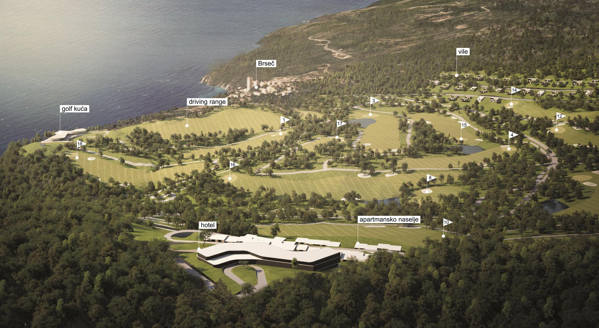 Spatial plans for the zone area define two basic purposes: sports and recreational with an area of 85.6ha intended for the golf course, and a hospitality and tourism with an area of 4.7ha planned to accommodate the Brseč tourist village. A golf clubhouse with a hotel and accommodation units – villas, is planned to be built on the edges of the course.