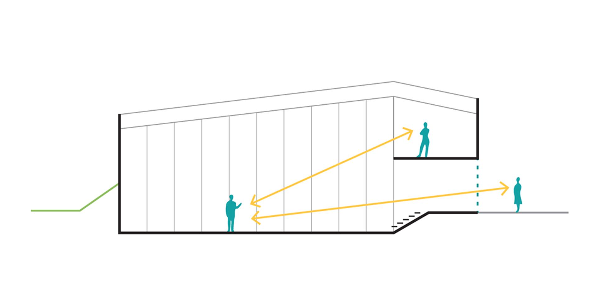 The private and intimate character of the building is juxtaposed to the open public primary function of the building and its openness by glass fronts to the street.